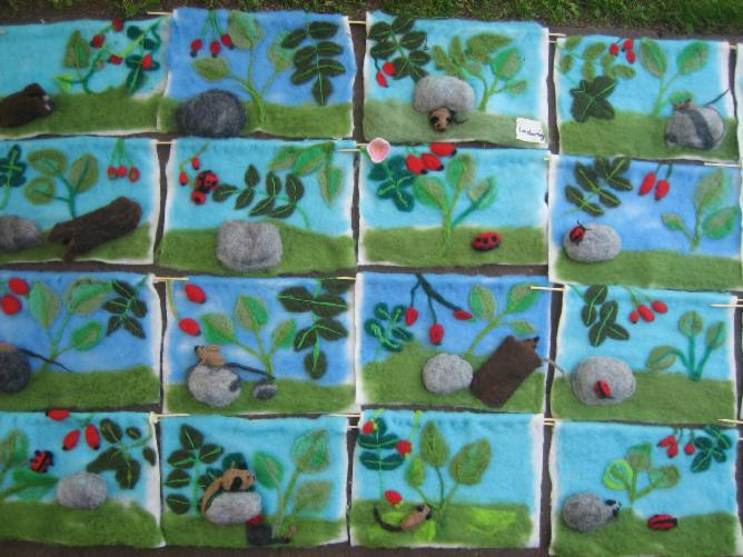 Malen mit Wolle: Filzprojekt "Hecke"